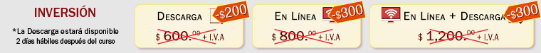 ADQUIÉRELO A TRAVÉS DE: O Realiza tu Inversión en: ![]() No. de Cuenta: 0125272955 CLABE: 012650001252729550 A Nombre de: Grupo Sinergia Inteligente, Capacitación Profesional S.A.S. de C.V. RFC: GSI250509I46 Envía tu comprobante de pago a: ventas@sinergiainteligente.com Para Mayores Informes, Comunícate con Nosotros: 222 237 2536 y 222 237 2234 ![]() |